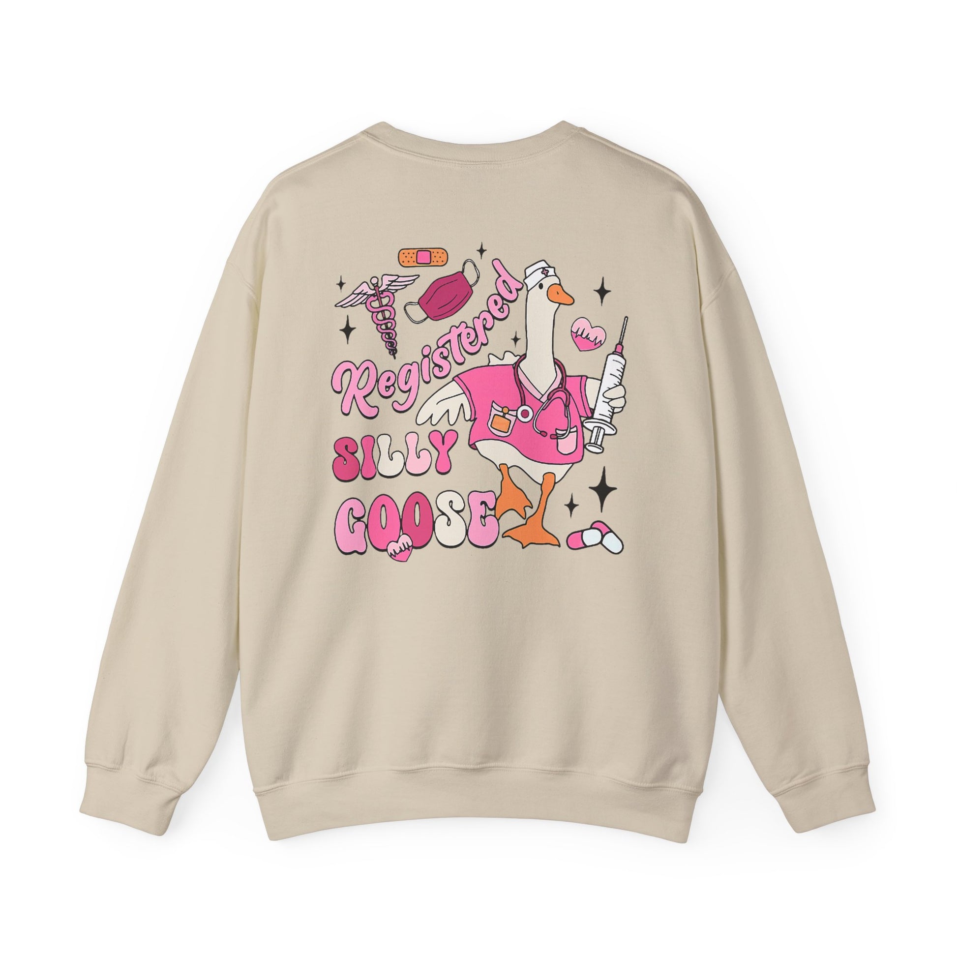 This Registered Silly Goose Adult Sweatshirt is perfect for registered nurses looking for a comfortable and durable option. It offers a classic fit, crew neckline, and double-needle stitching for top-tier durability. The Gildan 18000 sweatshirt is made from a medium-heavy cotton-polyester blend and features DTF inner neck labels for itch-free wear. Relevant for nurses, this sweatshirt is ideal for casual wear or showcasing your profession during nursing holidays or events.